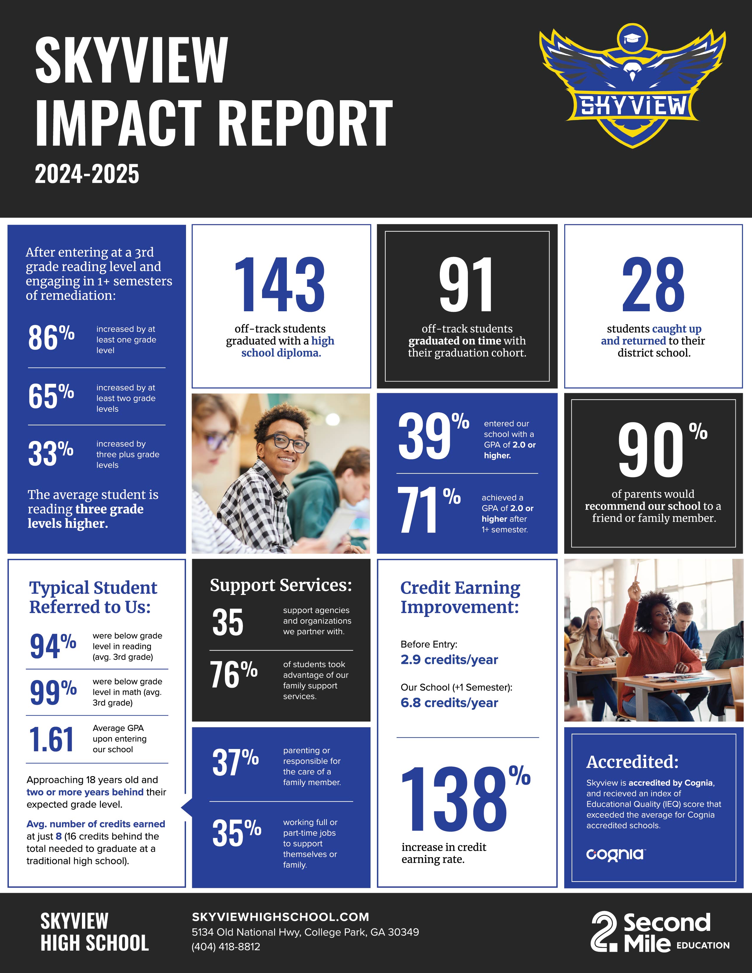 ![]() Accreditation: Skyview High School has met the criteria for educational quality established by the Cognia Global Commission and is accredited by the North Central Association Commission on Accreditation and School Improvement, the Northwest Accreditation Commission, and the Southern Association of Colleges and Schools Council on Accreditation and School Improvement. |